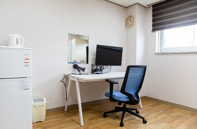 TV, remote controller, desk, chair, bedding set, closet, A/C(Heater), fridge, free wi-fi, hair drier, water boiler, cup, mirror, trash can, toilet paper